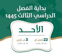 - بداية الفصل الدراسي الثالث: 3 مارس 2024، وينتهي في 10 يونيو 2024.