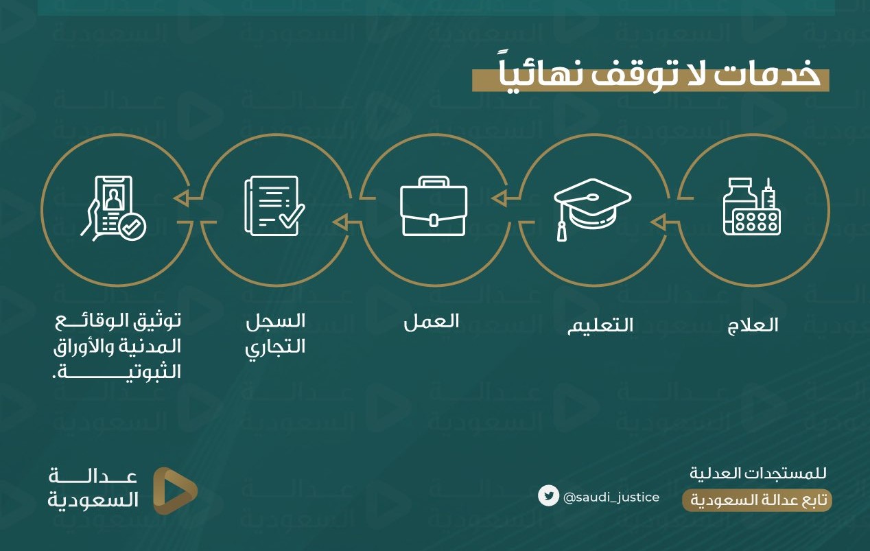 - رفع إيقاف الخدمات أصبح إلكترونيًا عبر البوابة الرسمية لوزارة العدل.