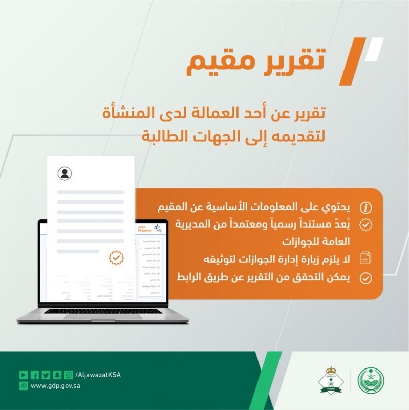 من خلال هذه الخطوات، يمكن للمستفيد إتمام طلب تقرير المقيم بكل سهولة ويُسر، والحصول على التقرير الرسمي دون الحاجة إلى توثيقه من الأقسام الخاصة بالجوازات.