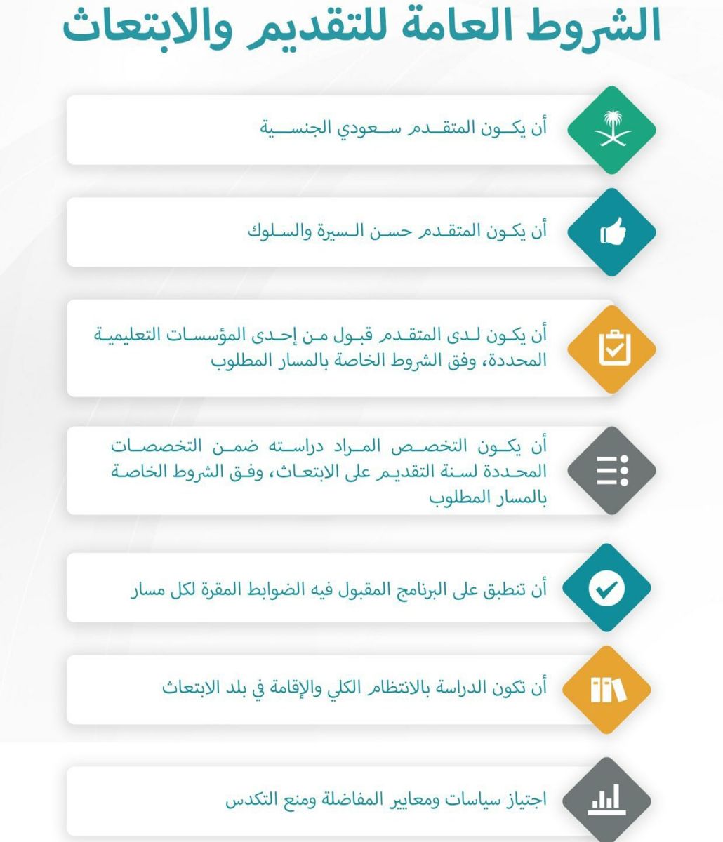 تتضمن شروط الابتعاث برنامج خادم الحرمين الشريفين مجموعة من الشروط والتفاصيل الهامة، منها: