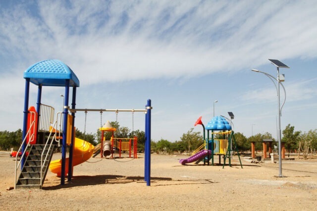 تشتمل الحديقة على مساحات خضراء شاسعة مليئة بأشجار النخيل الشامخة، مما يوفر بيئة مثالية للتجول والاسترخاء، بالإضافة إلى ذلك، تضم الحديقة أماكن مخصصة للجلوس والاستمتاع بالطبيعة، بالإضافة إلى ألعاب متنوعة للأطفال تجعلها وجهة مفضلة للعائلات.