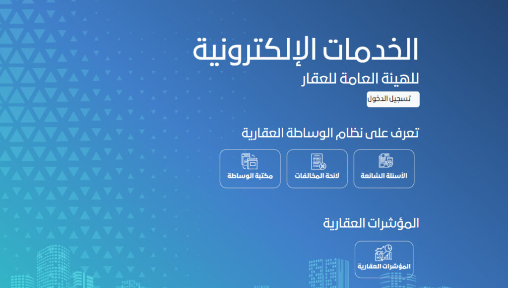 عليك بدايةً الدخول إلى الموقع الإلكتروني الرسمي الخاص بالهيئة العامة للعقارات عن طريق الضغط هنا.