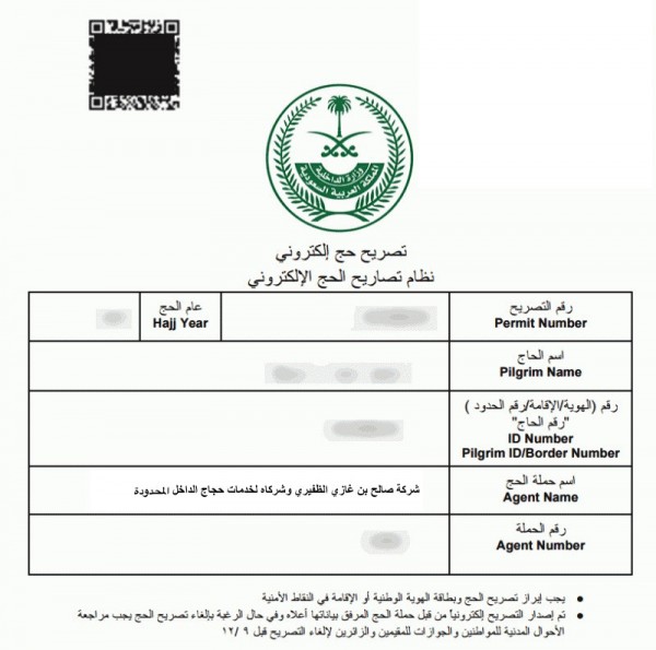 عندئذ ستظهر أمامك كافة البيانات الخاصة بتصريح الحج.