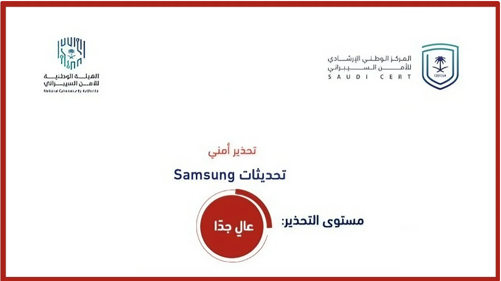 أصدر المركز الوطني الإرشادي للأمن السيبراني في السعودية تنبيه أمني بالغ الأهمية يصنف بمستوى "عالٍ جداً"، يخص التحديثات الأمنية الشهرية لعدد من منتجات شركة سامسونج.