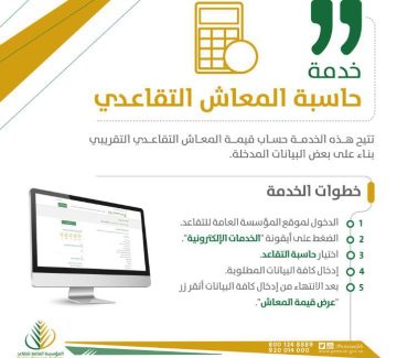 لحساب معاش التقاعد، يجب اتباع خطوات معينة من خلال منصة المؤسسة العامة للتأمينات الاجتماعية، والتي تتيح للمواطنين حساب المعاش المتوقع بناءً على عدد سنوات الاشتراك ومتوسط الراتب خلال فترة الخدمة، يمكن لأي مواطن سعودي الاستفادة من خدمة حاسبة المعاش من خلال اتباع الخطوات التالية: