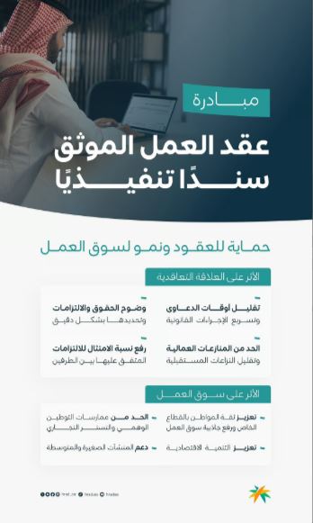 كذلك، تسهم المبادرة في تسريع الفصل في القضايا العمالية عند حدوثها، كون العقود الموثقة تصبح سندات تنفيذية معترف بها لدى الجهات المختصة.